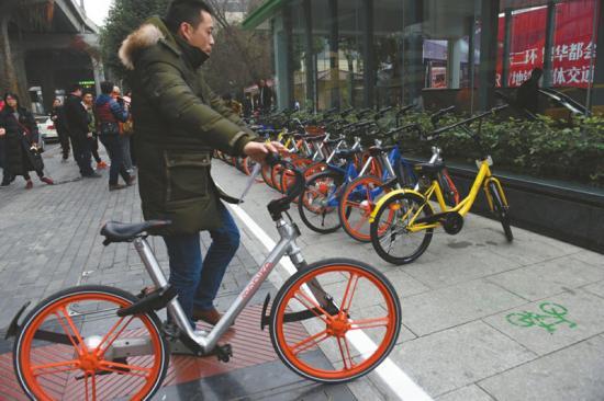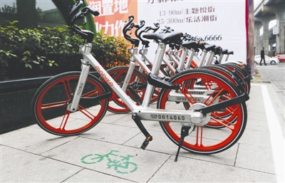 ??? 2016年底以來,北京共享單車突然就火爆了起來,街頭巷尾隨處可見,仿佛一夜之間,共享單車已經(jīng)到了“泛濫”的地步,地鐵站、市中心寫字樓、大型活動空間周邊,路邊排滿各種顏色的共享單車。近日,北京市統(tǒng)計局發(fā)布“北京居民使用共享單車及滿意度專項調(diào)查”數(shù)據(jù),結(jié)果顯示,1000名受訪居民中,39.9%的被訪者每天至少騎1次共享單車。換句話說,在北京,四成人每天至少騎1次共享單車。 共享單車已成為居民短途出行的重要交通工具,但是隨之而來的亂停、亂放,占用公共空間的現(xiàn)象也越來越明顯,嚴重影響了市容環(huán)境,也給城市管理帶來了不少難題。記者在調(diào)查采訪中發(fā)現(xiàn), 目前北京一些區(qū)域?qū)蚕韱诬嚨囊?guī)范和治理進行了積極的探索,一些地區(qū)也率先出臺了相關(guān)舉措。 西城首設(shè)共享單車1.5米“文明停車線”