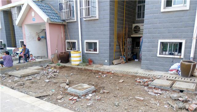 欣旺花苑小區(qū)是一個規(guī)模很大的拆遷安置小區(qū),位于秣陵街道,共有居民樓164棟,住戶15000多人。26日上午,記者來到該小區(qū)進(jìn)行探訪。在小區(qū)西部片區(qū),記者看見一些工人正在居民樓前施工作業(yè)。據(jù)觀察,整個改造工程的綠化移除環(huán)節(jié)已經(jīng)臨近完工,大部分居民樓前的花壇、草坪、灌木都已經(jīng)不見了,只剩下裸露的黃土或是已經(jīng)鋪上了石子。頗具諷刺意味的是:在一處剛剛被開挖的花壇上,還留有一塊牌子。上面寫著“爭做環(huán)保使者,共創(chuàng)綠色文明”。
